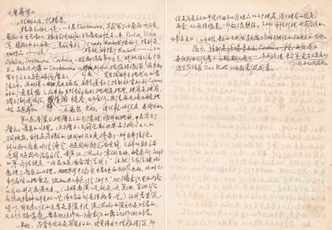 表面上,这两页手稿讨论观看莎剧《终成眷属》一出中文改编舞台剧的观后感,然而陆先生举重若轻,探讨了该剧的实质并非浪漫喜剧,更接近“问题喜剧”,问题的核心则是一个人“该做什么”与“愿做什么”之间的冲突,陆先生进而深入分析了莎翁对“愿做什么”背后动机的处理,观点新颖,文末还给出了舞台表演方面(比如演员是否该穿中国古装)的建议。