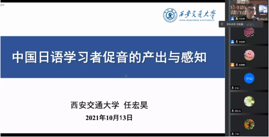 2021年10月13日,外文学院语音实验室(PhonLab)邀请到西安交通大学外国语学院助理教授任宏昊,以“中国日语学习者促音的产出与感知”为题进行专题讲座。会议由日文系副教授刘佳琦和英文系讲师李昕共同主持。