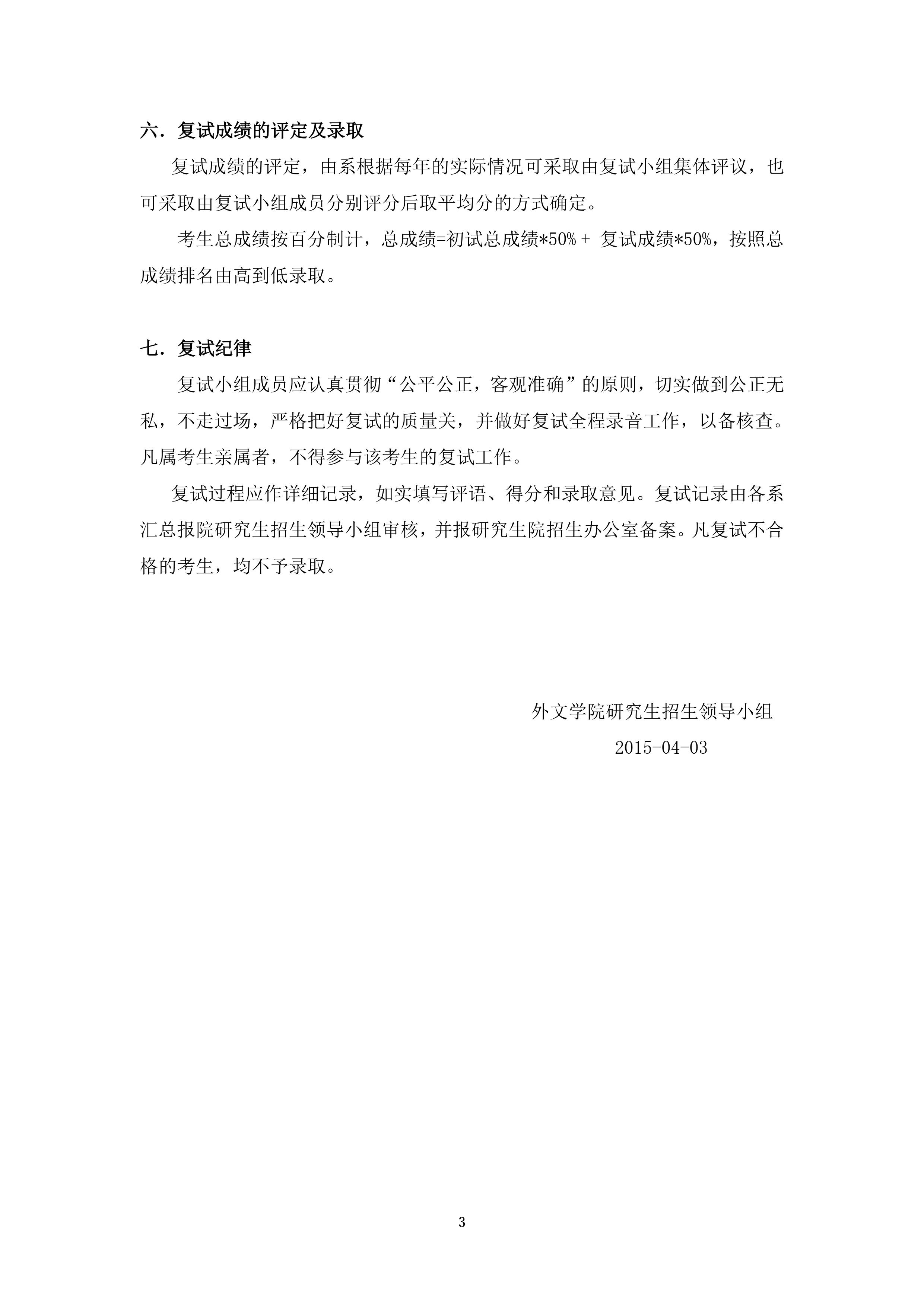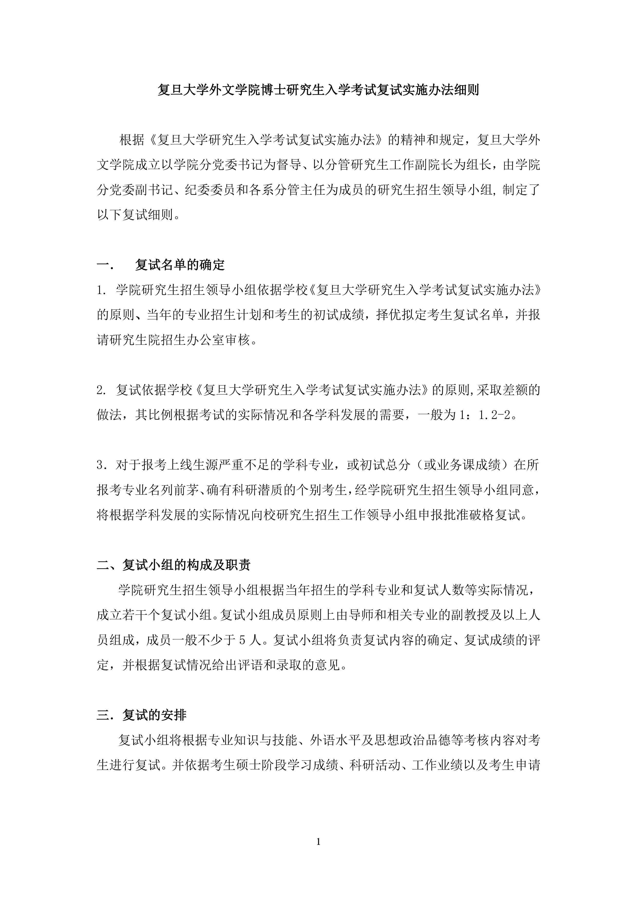 复旦大学外文学院博士研究生入学考试复试实施办法