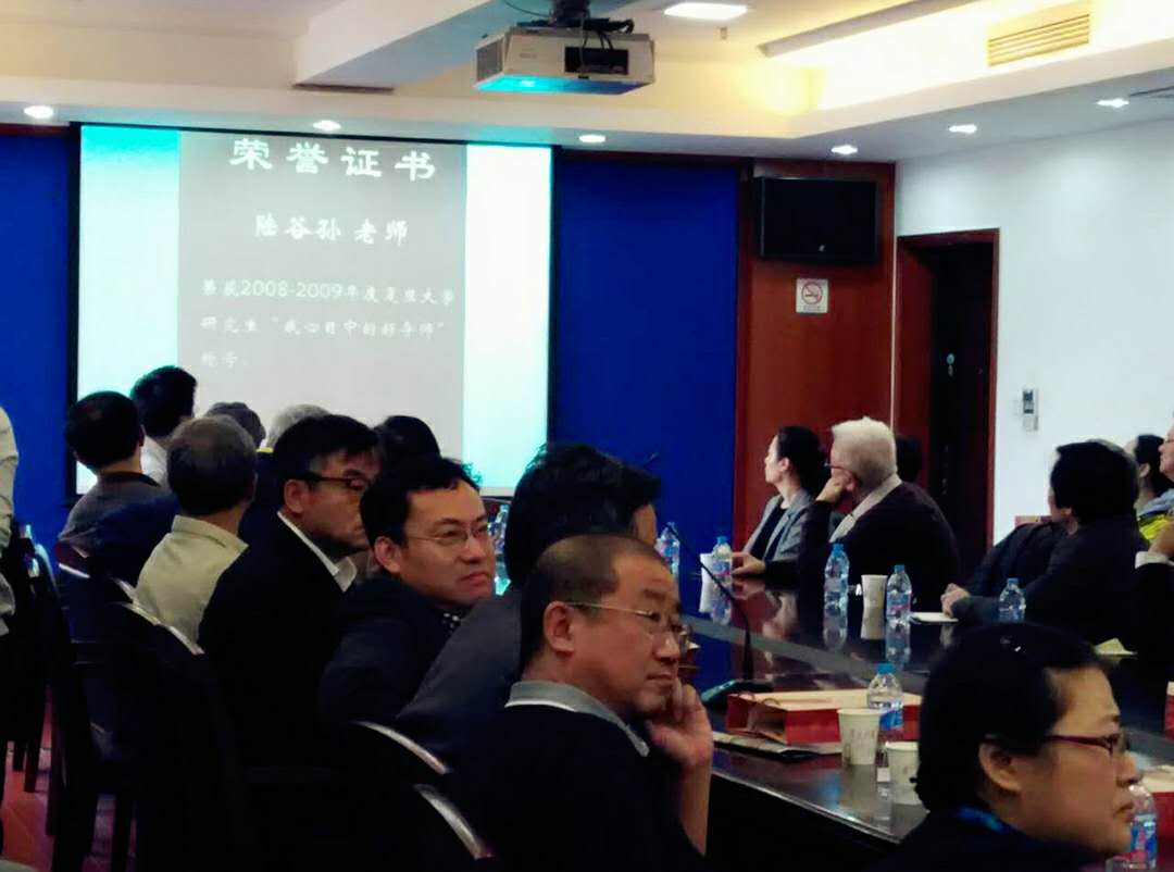 2016年11月18日上午,“陆谷孙教授学术思想研讨会”在复旦大学文科楼220会议室举行,陆谷孙教授生前的好友、同事、学生及师生代表等出席研讨会。研讨会由外文学院副院长高永伟主持,外文学院院长曲卫国、党委书记李倩参加研讨会。
