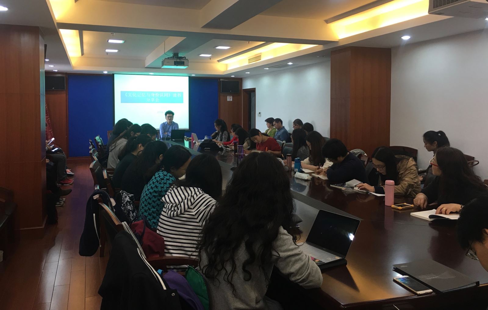 11月18日中午13:00,外文学院青年教师联合会在文科楼220举办读书会活动。此次青联会特别邀请到了华中科技大学德语系副教授庄玮老师,与外文学院师生共读赵静蓉的专著《文化记忆与身份认同》。共有来自各院系的30多名本科生、研究生、博士生以及老师参加讨论。