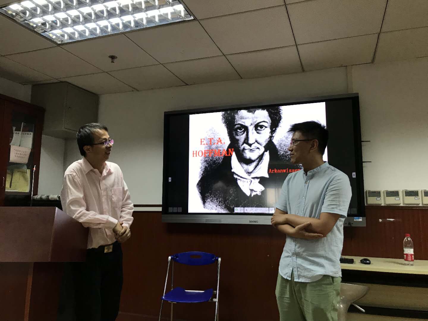 2018年5月17日,复旦大学外文学院青联会有幸邀请了上海外国语大学德语系梁锡江教授,在文科楼424举行了主题为“德国浪漫派作家霍夫曼与神秘学”的讲座。本次讲座由外文学院德语系青年研究员李双志老师主持,吸引了众多对霍夫曼、对神秘学感兴趣的本校外校师生。