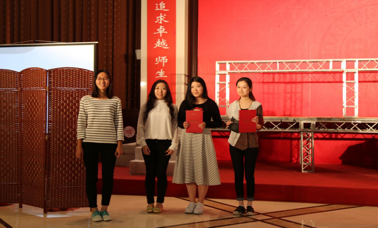 5月29日下午13:30,外文节的最后一项活动——首届复旦大学双语主持人大赛的决赛在文科楼209的舞台上落下了帷幕。初赛共有来自各个院系的26位选手提交了中英参赛视频,后经组委会的筛选决出了比赛的最终10强。这一天,10位风采俱佳、侃侃而谈的决赛选手经过四轮激烈的角逐分别收获了比赛的冠亚季军、风采主持奖和优秀主持奖,欣然捧回了由FBC Global赞助的《冰与火之歌》原版全集、路遥全集等精装奖品书籍。最终15级法语系的钟雨桐同学斩获冠军,15级经济学院的丁英飞同学、14级翻译系的宋昕桐同学分获亚军和季军。
