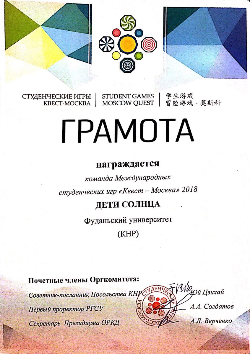 4月24日至5月2日,2018年“探险·莫斯科”国际大学生俄罗斯国情文化知识竞赛在俄罗斯首都莫斯科举办。该项赛事由莫斯科市政府、中俄友好协会、中国驻俄罗斯大使馆、俄罗斯国立社会大学联合主办,迄今已成功举办三届。今年共有八支队伍约50名学生代表中国参赛,除复旦大学外,另有北京外国语大学、上海外国语大学、黑龙江大学、西安外国语大学等高校代表队参加。