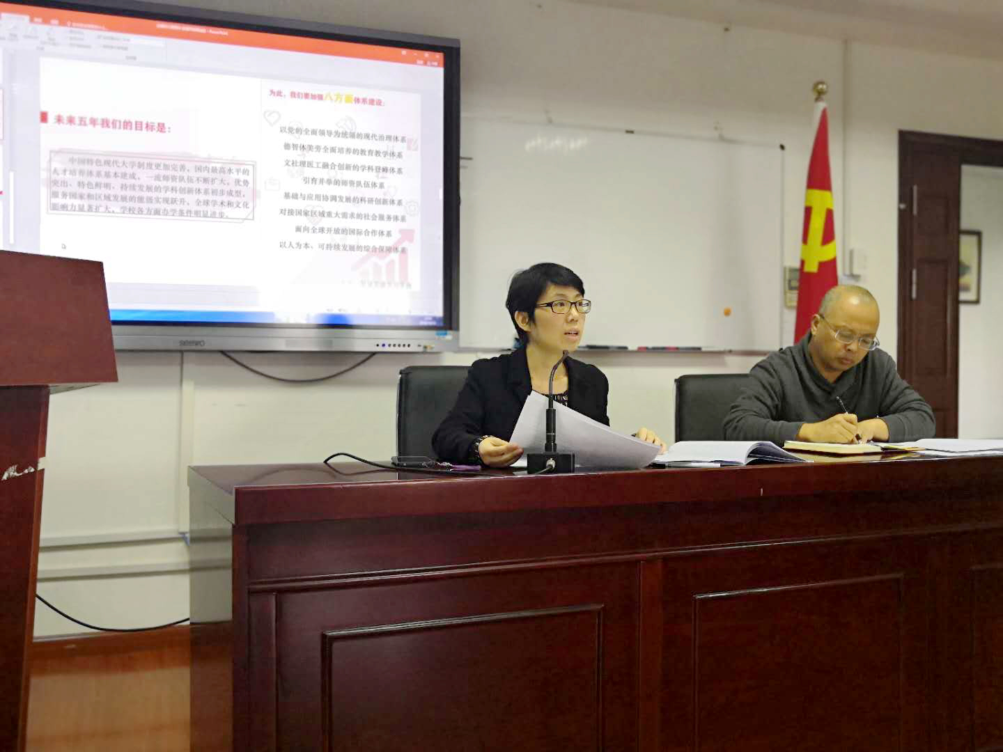 随后,罗英华书记向大家传达了全国教育大会精神,并就各支部、系部深入学习贯彻学校第十五次党代会精神和全国教育大会精神的工作进行了部署。