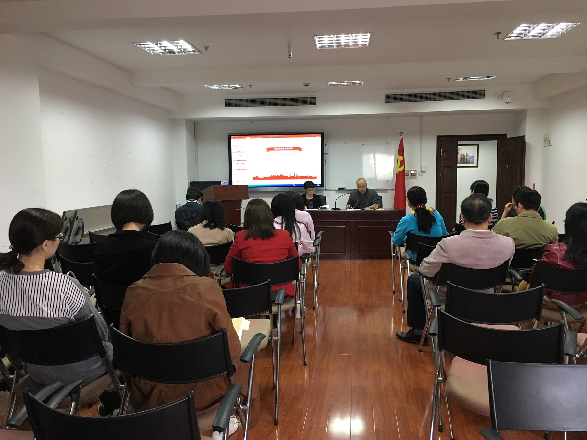 2018年10月16日下午,外文学院分党委在文科楼510会议室举行中心组(扩大)学习会议。学院党委委员、教工党支部书记、行政后勤支部党员参加会议,学院党委书记罗英华主持会议。