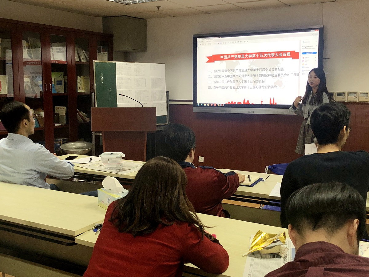 罗英华书记向大家传达了题为“立德树人固根本 改革开放再出发 全面开启中国特色世界顶尖大学建设新征程”的十四届党委工作报告精神,从过去五年学校的主要工作回顾、新时代复旦大学的历史使命和战略目标、开创中国特色世界一流大学建设新局面、一流党建和思想政治工作引领一流大学建设四个方面介绍和解读了报告的主要内容。罗英华表示,党代会报告是集体智慧的结晶,充分体现了全校上下的共同愿望,是学校加快推进“双一流”建设、全面开启中国特色世界顶尖大学建设新征程的宣言书,是指导今后一个阶段学校各项工作的纲领性文件。罗英华要求,全院党员和师生员工要从全局和战略的高度,充分认识学习贯彻第十五次党代会精神的重要意义,把学习贯彻党代会精神作为当前和今后一个时期一项重要的政治任务,努力在深刻把握领会精神、深入贯彻落实上下功夫,紧密结合学校和学院改革发展的实际,深刻领会和准确把握党代会报告的精神内涵,认真落实党代会的各项工作部署,把学习贯彻党代会精神转化为干事创业的强大动力,全面加强学院党的建设,加快“一流学科”建设,认真做好本科教学迎评工作,立足本职,勇于担当、锐意进取、争作表率,以实际行动和工作实绩推进学院各项事业的发展。​​