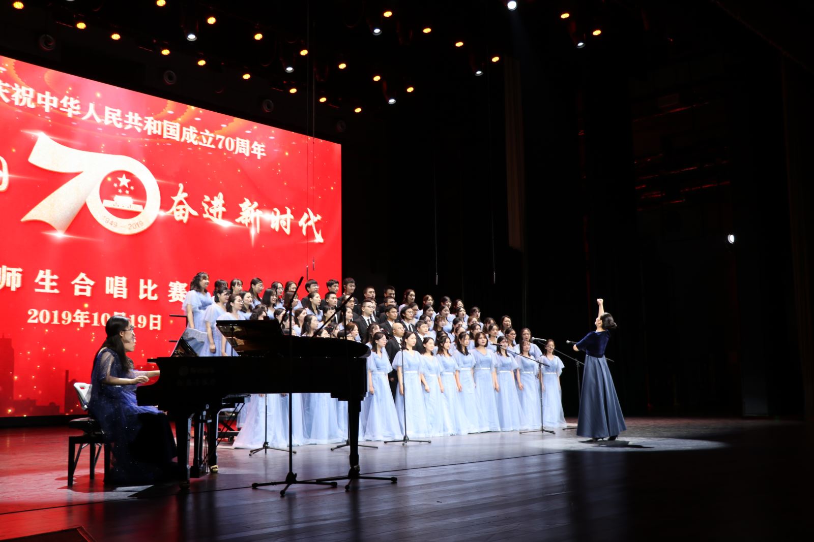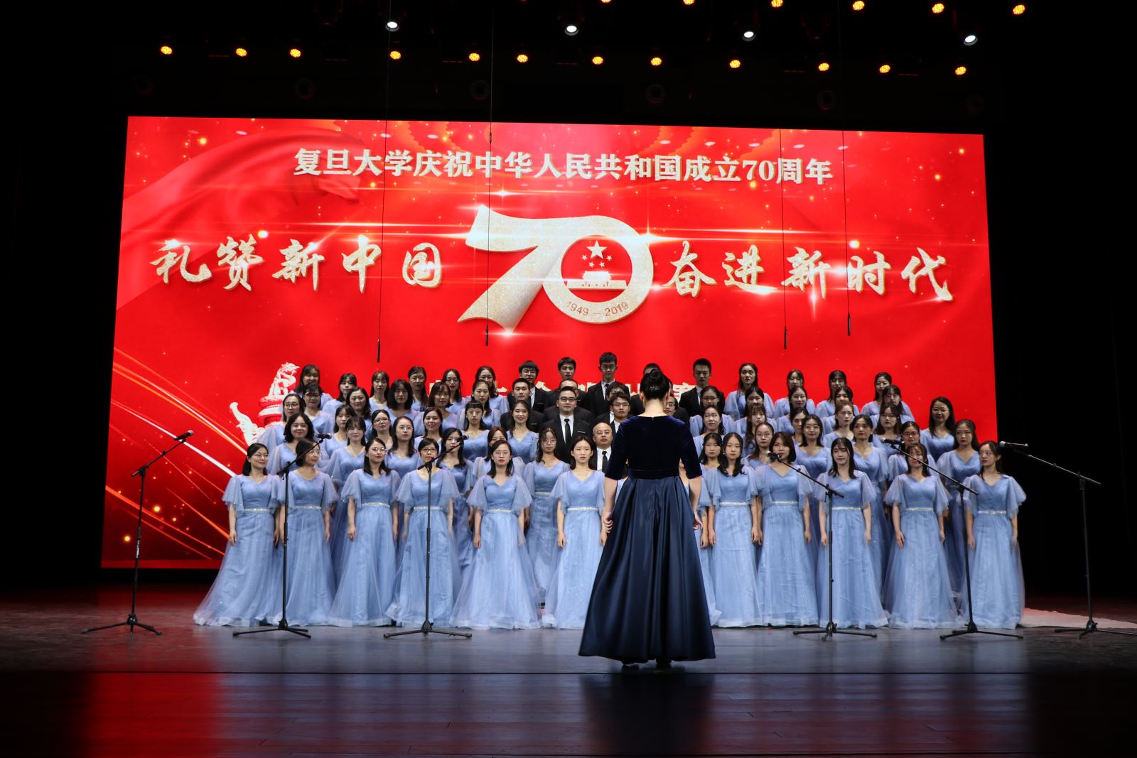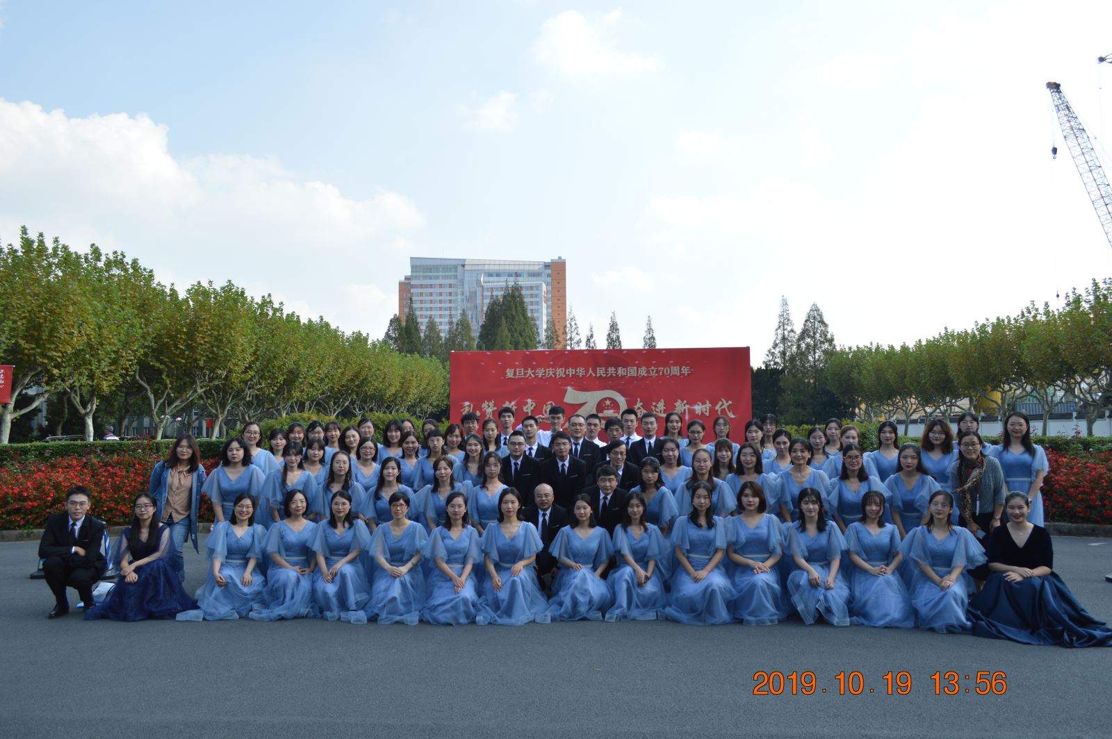 2019年10月19日,“礼赞新中国、奋进新时代”——复旦大学师生庆祝新中国成立70周年师生合唱比赛在相辉堂隆重举行。外文学院合唱团参加了大合唱比赛,经过一个多月的紧张排练,师生默契十足,现场发挥稳定,赢得掌声阵阵。最后虽与奖项擦肩而过,但师生拳拳赤子心、殷殷爱国情在歌声中愈唱愈响,激励着外院师生不忘初心、砥砺向前。