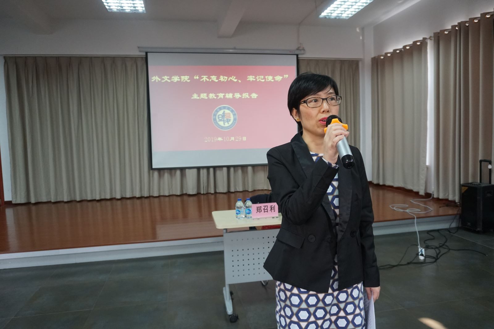 2019年10月29日下午,外文学院在工会204报告厅举行“不忘初心 牢记使命”专题辅导报告暨教职工政治理论学习会,邀请哲学学院郑召利教授作《共产党宣言解读》的专题辅导报告,会议由学院党委书记罗英华主持。