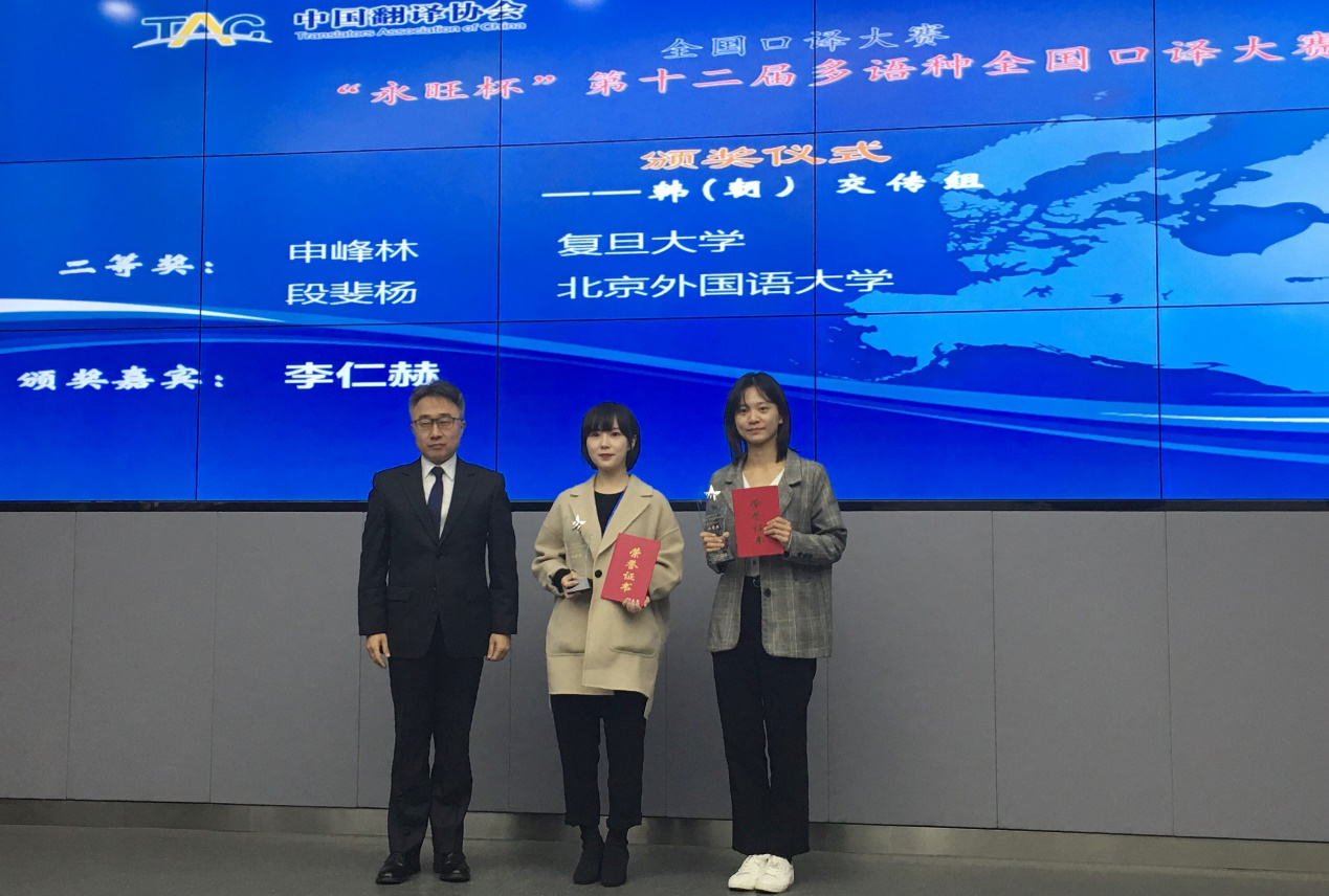 我院韩文系博士研究生申峰林获2019年全国口译大赛二等奖