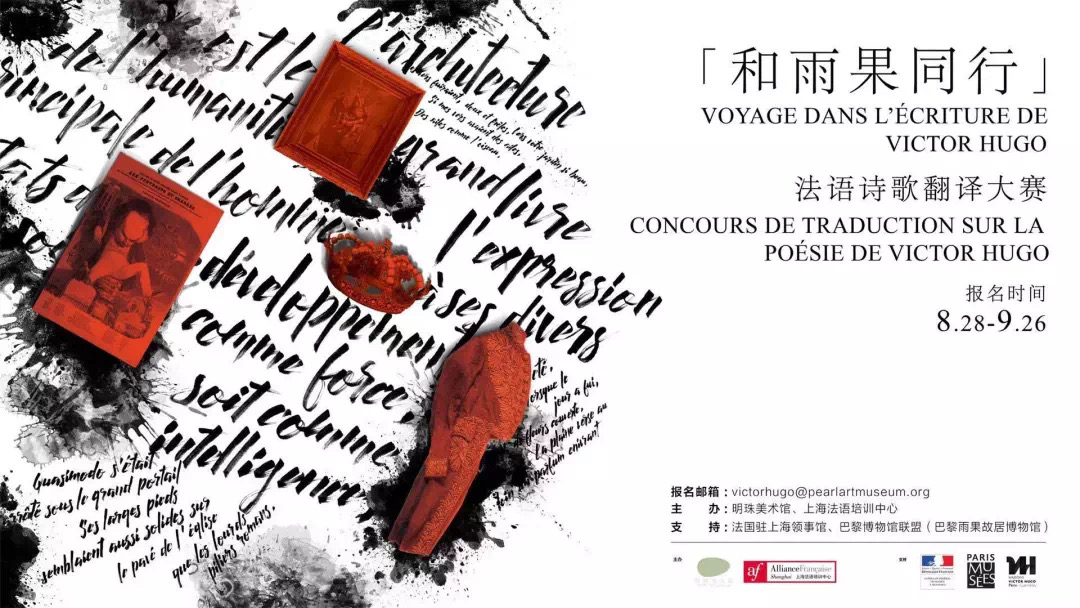 “和雨果同行”诗歌翻译大赛由上海明珠美术馆发起,在法国驻沪总领事馆、法国巴黎博物馆联盟和上海法语培训中心(Alliance française)的大力支持下共同举办。在持续两个半月的时间里,举办方共收到326份有效参赛投稿,有16位参赛者进入最后的终选名单。此次诗歌翻译大赛共选取了雨果的五首诗歌文本,包括大家耳熟能详的《Demain, dès l’aube》(《明天,天一亮》),要求参赛者体会诗人在不同时期的心情,从而对诗歌的节奏、意象和文字进行把握,尽量保留和传递原诗中的情绪。