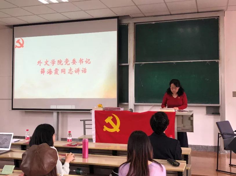 4月28日,中国共产党复旦大学外文学院学生党员代表大会在邯郸校区第三教学楼举行。外文学院101名学生党员出席大会,学院党委书记薛海霞同志和组织员孙程同志受邀列席大会。