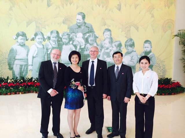 图四:彭丽媛女士向孙建教授及丹麦主编表示祝贺