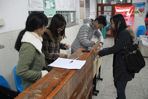 11月28日上午,外文学院12级本科生和部分11级、13级、14级本科生同学在校医院进行了集体献血。有超过50名同学进行了体检,最终成功献血的同学为38名。前来慰问的领导老师有学院副院长高永伟老师、学院党委副书记赵强老师、学工组长郑阳老师及12级别辅导员朱旭峰、吴奕霏老师。