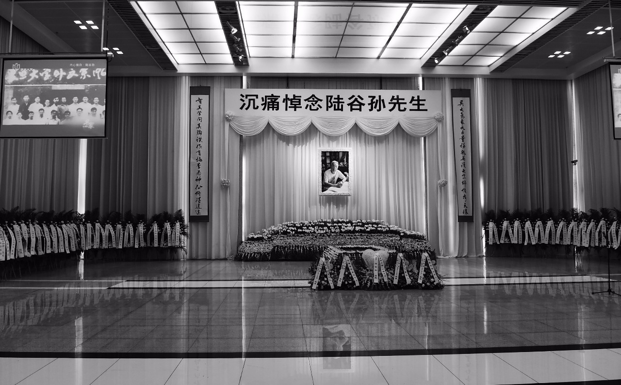 陆谷孙先生1940年2月24日出生于上海,因病于2016年7月28日13时39分,在上海新华医院逝世,享年77岁。陆谷孙先生逝世后,中央领导同志、国家有关部委领导同志以各种方式表示深切哀悼。上海市领导韩正、杨雄、殷一璀、吴志明、应勇、沈晓明、蔡达峰、翁铁慧,市老领导龚学平、罗世谦、范德官、宋仪侨,市有关部门和单位领导肖贵玉、宗明、胡劲军、徐炯、彭卫国、王安忆、高韵斐、施岳群、陈昕,湖南师范大学校长蒋洪新、原中国驻巴基斯坦大使陆树林,复旦大学老领导及现任领导杨福家、程天权、秦绍德、林尚立、桂永浩,中国科学院院士胡和生、王迅,中国工程院院士闻玉梅,复旦大学文科资深教授姜义华,上海复旦校友会会长梁信军和复旦大学外文学院各届校友、陆谷孙先生生前友好敬送了花圈,对陆谷孙教授的逝世表示沉痛哀悼,向其家属表示深切慰问。