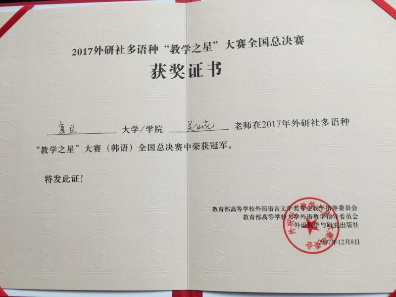 祝贺我院韩文系吴仙花老师荣获2017外研社多语种“教学之星”大赛全国总决赛冠军
