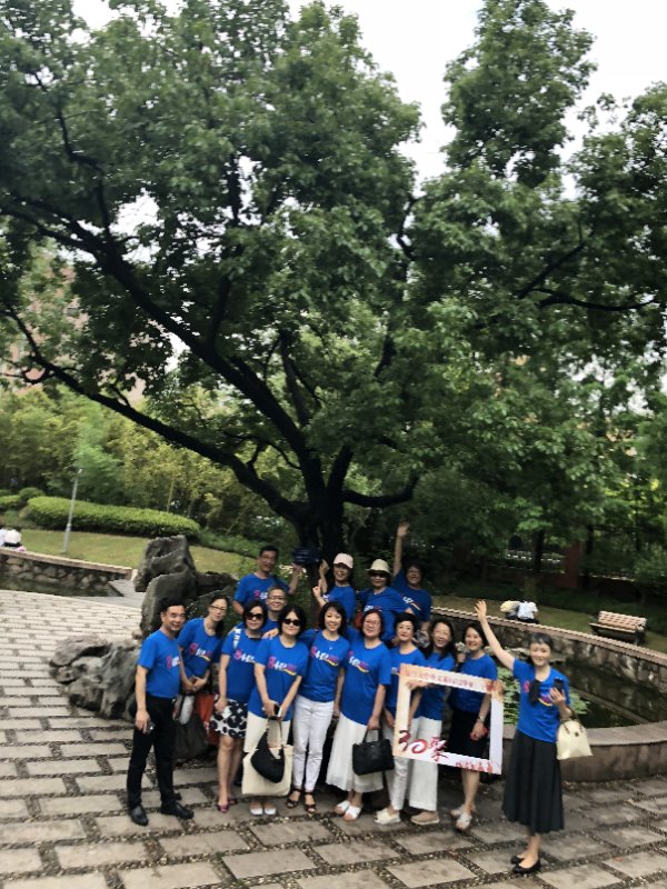 返校活动前,8412校友集体在曦园认养了一棵香樟树,活动期间,校友们重访邯郸校区,在树下留影。校友们还前往江湾校区参观、举办欢聚晚宴和“迟到的毕业旅行–同里二日游”等活动。